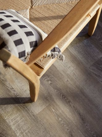 Topli rustikalni toni se prepletajo skozi dimno sivo zrno, ustvarjajoč značilen les, poln gibanja.