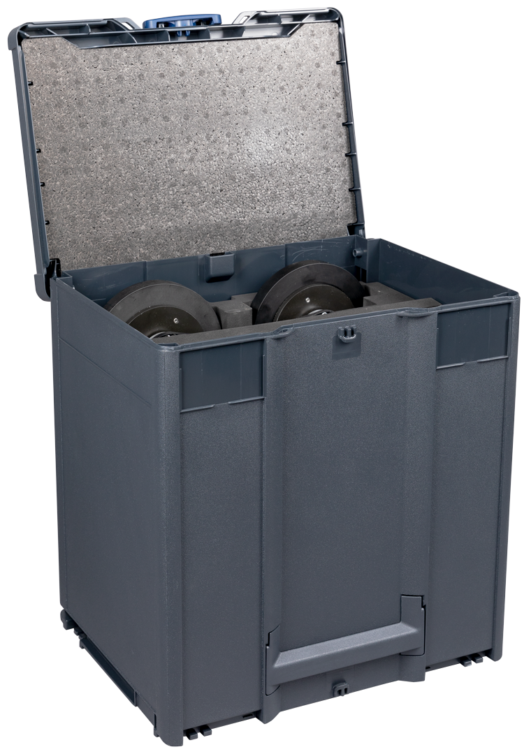 Zložljive škatle, ki jih je mogoče zakleniti med seboj. Vsaka škatla ima vložek, posebej zasnovan za najboljšo zaščito vaših orodij. Povezuje se z Bona Box Trolley za enostaven in gladek transport.
