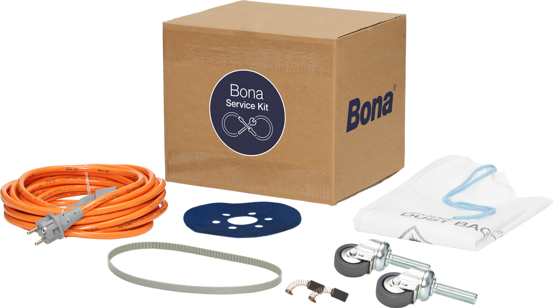 Da bi vam olajšali življenje, lahko zdaj redno sami izvajate osnovno servisiranje. Na podlagi izkušenj o tem, kaj potrebuje pozornost, je Bona sestavila servisne komplete z najpogostejšimi rezervnimi deli ter jasnimi navodili za enostavno zamenjavo.