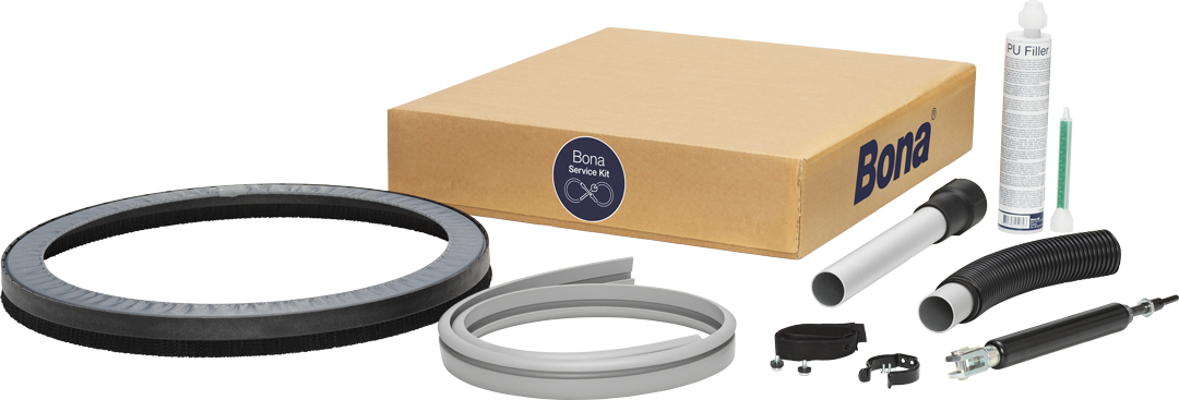 S servisnim kompletom Bona pri roki je čas izpada zmanjšan, rezervni deli pa bodo na voljo, ko jih boste potrebovali, kar vam omogoča, da ste vedno pripravljeni na delo.