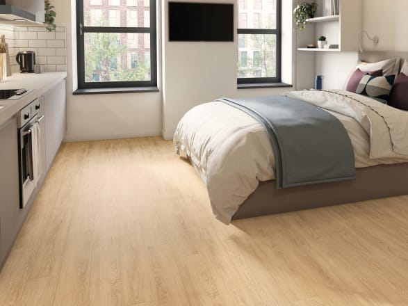 Buckwood Timber, s svojimi čistimi linijami in sodobnim občutkom, ima nežno toplino in mehko teksturo za preprost, umirjen videz.