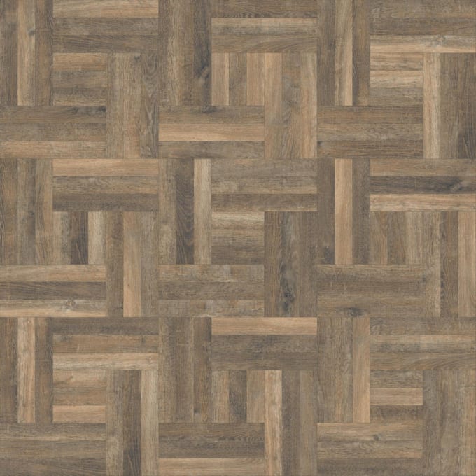 Bogat, vremensko obdelan hrast zagotavlja močan kontrast proti prepletajoči se kompleksnosti vzorca Chantilly Weave.