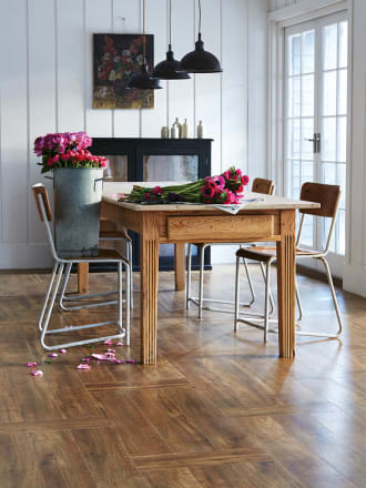 S svojim videzom obnovljenega lesa in zlatimi toni, Farmhouse Oak izgleda čudovito v vsakem okolju