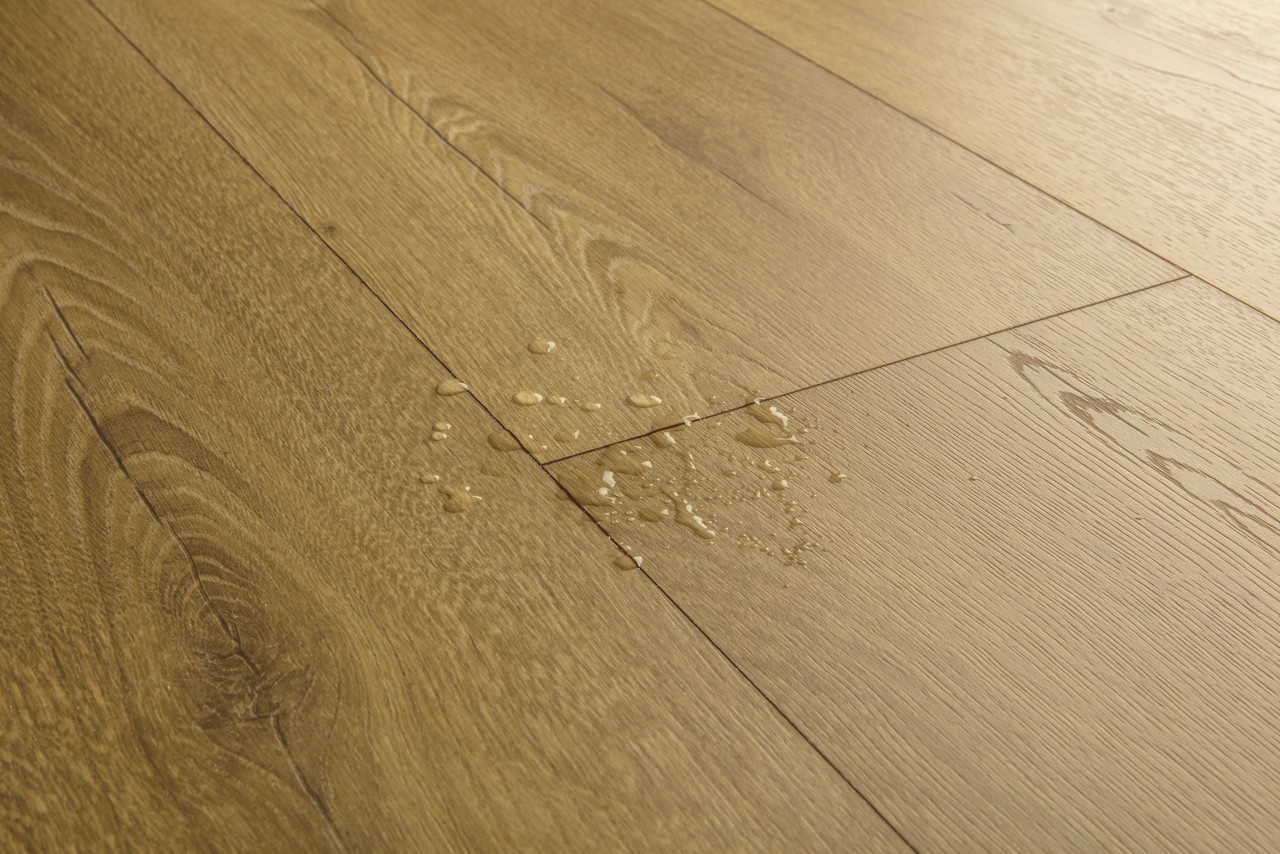 Pozabite na težave z vlago z izbiro vodoodporne Quick-Step talne obloge. Ta tla niso le izjemno elegantna in naravna, temveč so tudi 100% odporna na površinsko vlago, kar olajša čiščenje kot kdajkoli prej!