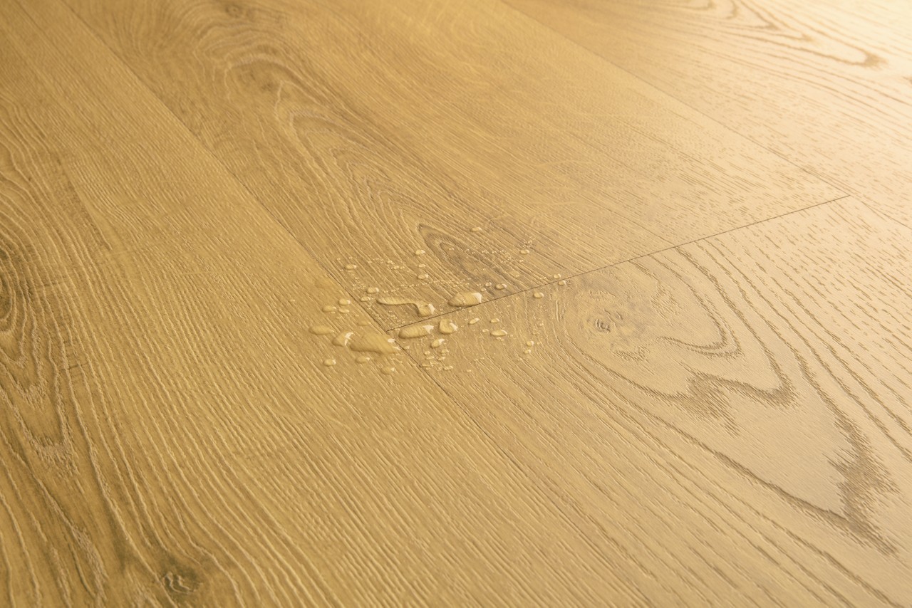 Pozabite na težave z vlago z izbiro vodoodporne Quick-Step talne obloge. Ta tla niso le izjemno elegantna in naravna, ampak so tudi 100% odporna na površinsko vlago, kar olajša čiščenje kot kdajkoli prej!