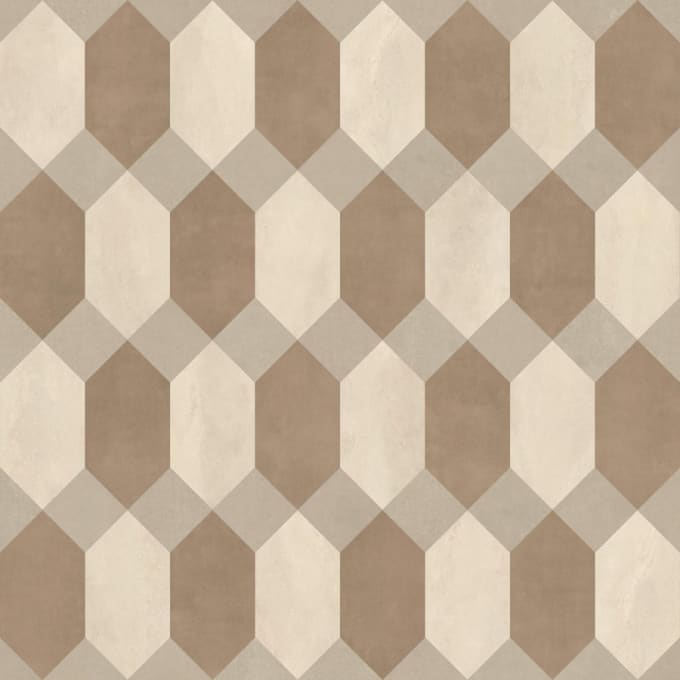 Tonska, zemeljska paleta v kombinaciji z modernim geometrijskim vzorcem ustvarja naravno barvno shemo z retro pridihom.