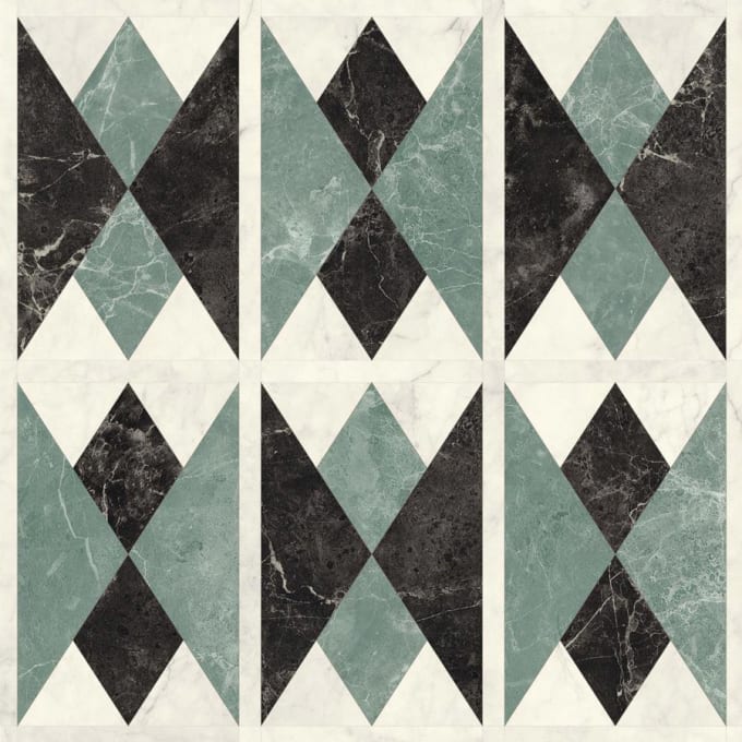 Klasična črno-bela kombinacija je posodobljena z osupljivim zelenim marmorjem. Popoln dodatek v majhnih izpostavljenih območjih.